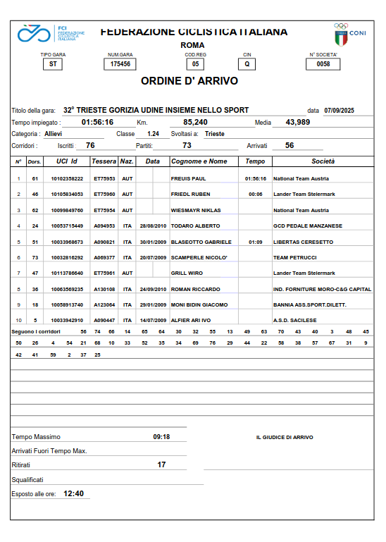 Paul Freuis, giovane atleta della Nazionale d’Austria, aggiunge il suo nome nel prestigioso Albo d’Oro di questa classica gara della categoria Allievi U17.